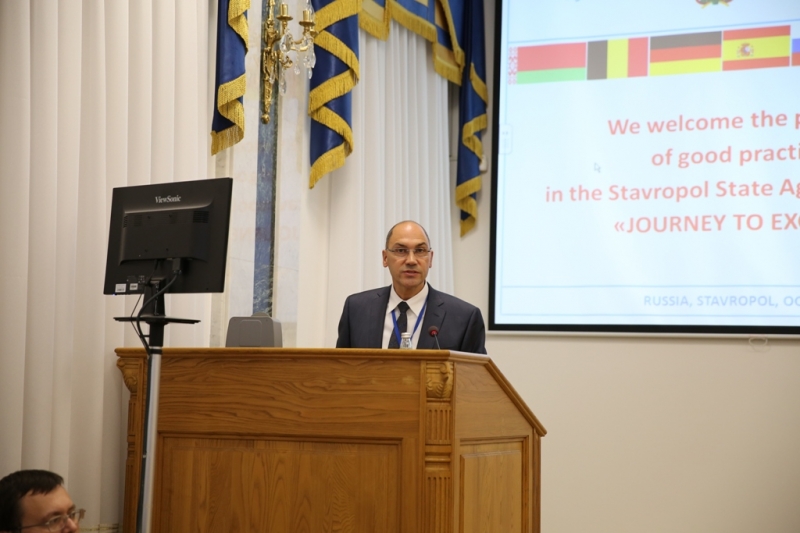 В рамках «Положительной практики» ректор Университета Владимир Иванович Трухачев в презентации «Ставропольский государственный аграрный университет: Путешествие к Совершенству» отметил главные вехи развития вуза на пути к Совершенству в соответствии с фундаментальными концепциями EFQM и обозначил перспективы развития Университета в соответствии с критериями Модели Совершенства EFQM.