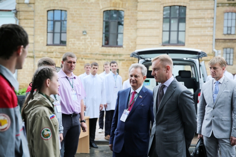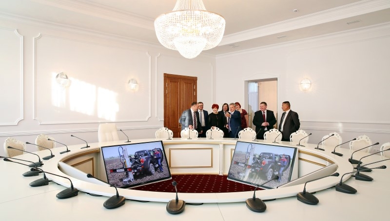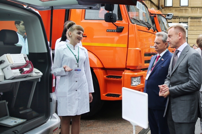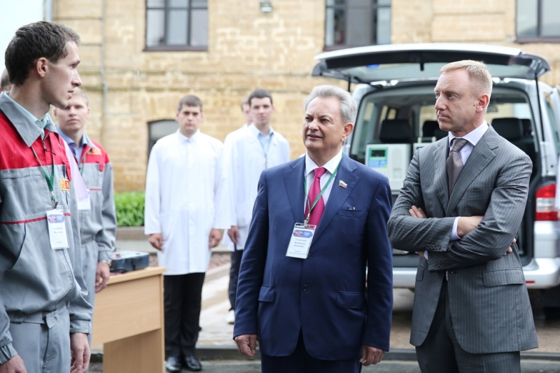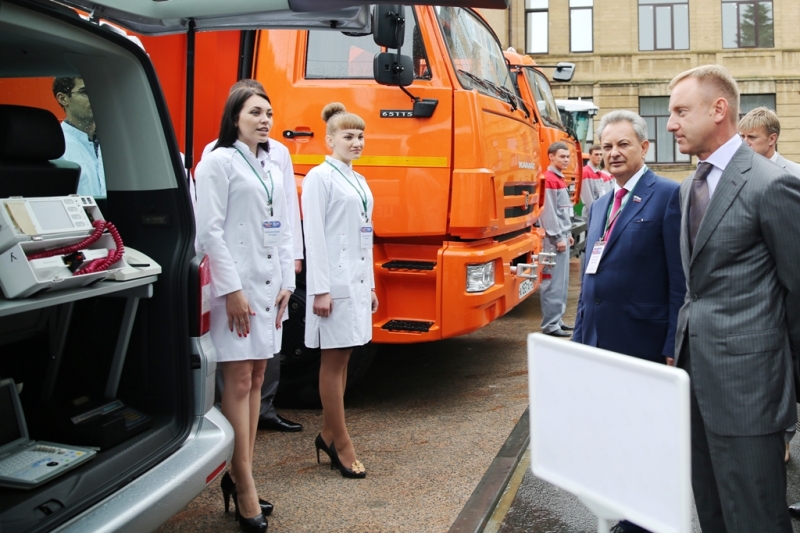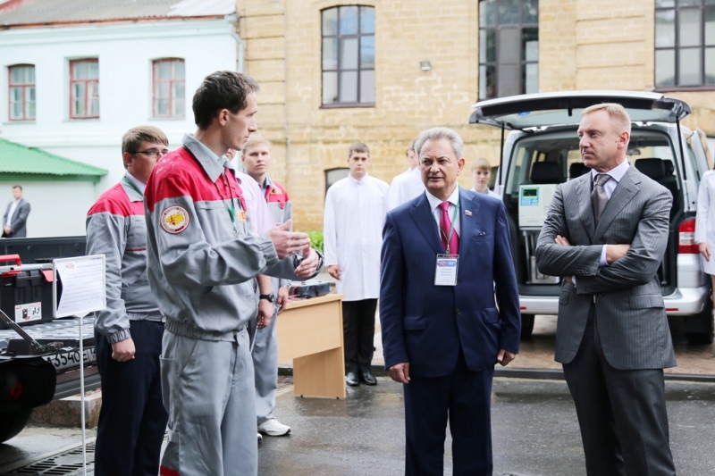 Далее студенты факультета ветеринарной медицины продемонстрировали министру образования уникальный передвижной комплекс для оказания первой помощи животным. По сути это передвижной ветеринарный центр, в котором можно сделать и лабораторный экспресс-анализ, и даже снять электрокардиограмму.