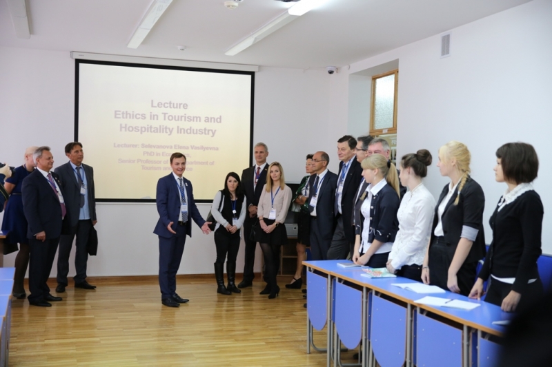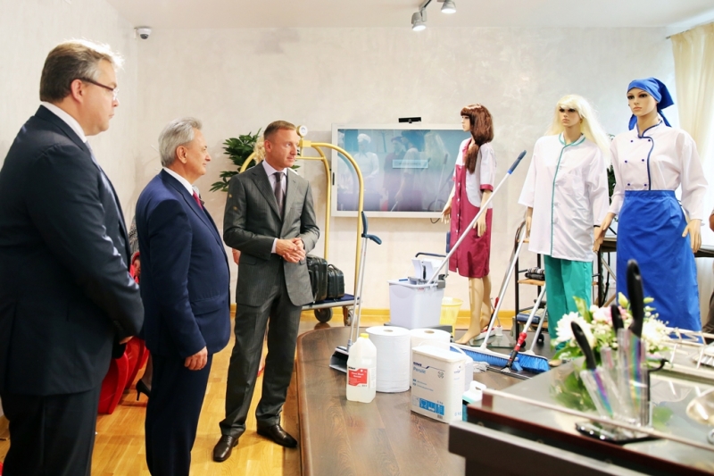 Гость вуза познакомился и с работой факультета социально-культурного сервиса и туризма, уникальные лаборатории которого повторяют дизайном лучшие отели мира и не имеют аналогов ни в одном российском вузе. Кстати, практикоориентированный принцип работы факультета основывается на методике обучения в швейцарских бизнес-школах сферы сервиса и гостеприимства. Дмитрий Ливанов поинтересовался уровнем трудоустройства выпускников, на что заведующий кафедрой туризма и сервиса Александр Трухачев рассказал, что уровень трудоустройства находится на уровне 80 %.