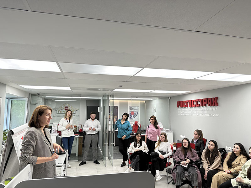 Также в ходе цикла мероприятий было организовано выездное занятие в Универсальный офис «Ставропольский» ПАО СК «Росгосстрах», в рамках посещения которого руководитель офиса Наталья Бирюкова рассказала студентам СтГАУ о работе структурного подразделения, функционировании агентского канала продаж и практических аспектах страхования имущества физических и юридических лиц.