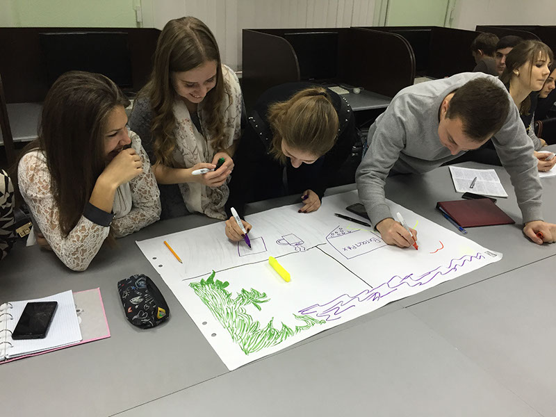 В ходе квеста студенты совместно с бизнес-тренерами страховой компании «Росгосстрах» – Свидиной Мариной Евгеньевной и Кузьминовой Светланой Викторовной – двигались по станциям, согласно изображениям на карте маршрута, решая различные интеллектуальные задания, чтобы дойти первыми до финиша. Ребята проявляли ловкость, выносливость, сообразительность.