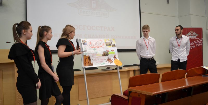 Первый этап конкурса – творческое задание по страхованию – прошёл в заочной форме. Второй очный этап предполагал выполнение различных конкурсных заданий, позволяющих оценить как индивидуальный уровень подготовки участников, так и командную работу в целом, в том числе практические навыки будущих специалистов. Данный этап проводился при участии представителей страховой компании – главного специалиста по обучению филиала ПАО СК «Россгосстрах» в Ставропольском крае Марины Евгеньевной Свидиной и главного специалиста управления агентских продаж Аделии Бариевной Самакаевой.