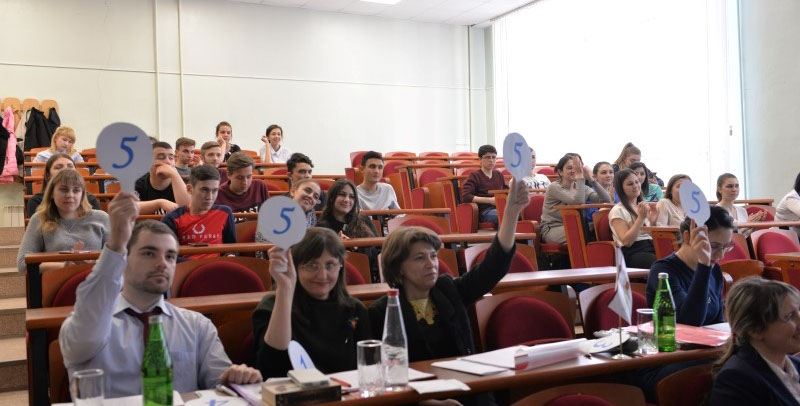 После выступлений команд не только судьи, но и зрители деловой игры задавали ребятам сложные вопросы, на которые они с лёгкостью отвечали. В итоге судьи отметили хорошую подготовку и осведомлённость студентов, а также инновационный формат проведения мероприятия. Обе команды действительно сумели блеснуть эрудицией и умением высказать своё пр