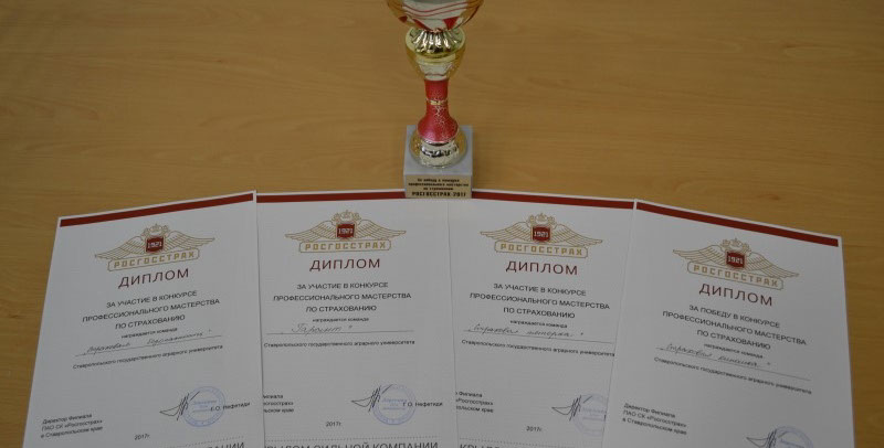 Каждой команде специалисты страховой компании «Росгосстрах» подарили уникальные издания – альбом плакатов ГОССТРАХА, в котором отражена не только его история, но и история страхования в России. А ещё всем участникам профессионального состязания вручили специальные призы от Студенческого страхового агентства Ставропольского ГАУ – страховые полисы на один год по программе страхования от несчастных случаев на сумму 30 тысяч рублей.